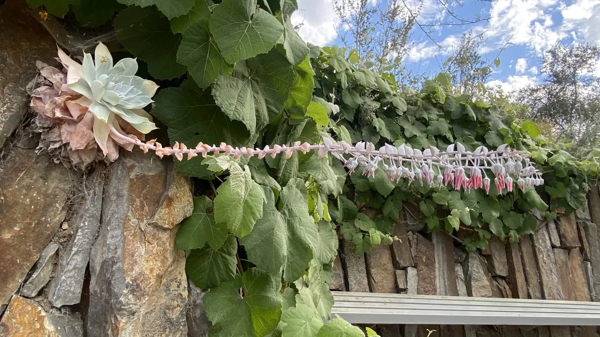 “Live Forever” Dudleya pulverulenta, or chalk dudleya, is a local species that goes dormant during summer when moisture is not available, then springs back to life in winter and spring. Look for them thriving in the little crevices between the stones outside on NHM's Living Wall.